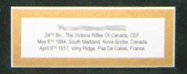 Each section of the shadow box corresponds to a different family member, except for the top right which contains memorabilia for two relatives who shared a common military background. The mounting backgrounds were chosen to reflect the division/regiment to which the relative belonged: Airforce tartan (top left) for his father who served in the Canadian Airforce; blue, yellow, and black colours of the Royal Canadian Regiment (top right) for both his grandfather and great uncle; green and red colours for the Victoria Rifles of Canada (bottom left) for his great great uncle and finally, the Murray of Atholl tartan (bottom right) for his namesake, his great uncle who served in the North Nova Scotia Highlanders.