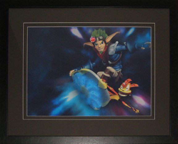 My customer is an avid video game player and purchased two silk video game posters depicting characters from Final Fantasy and Jak games. Although the tones of the posters differed (one had muted neutral colours; the other had rich vibrant colours), she wanted them framed similarly.