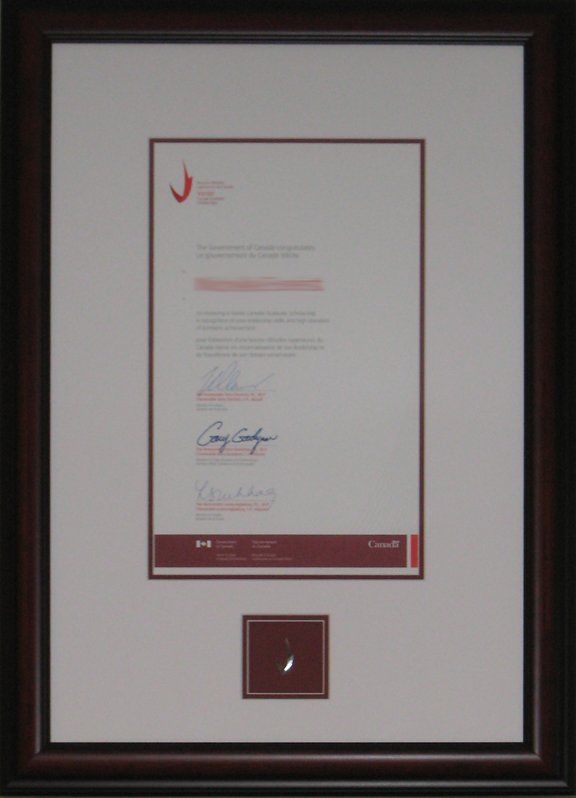 can frame diplomas and certificates to commemorate those life achievements such as... obtaining a degree from a post-secondary institution, celebrating a wedding anniversary milestone, retiring from a long time career. The design can be as simple as displaying just the certificate; or you may want to include a photo or other memorabilia that is associated with the certificate.