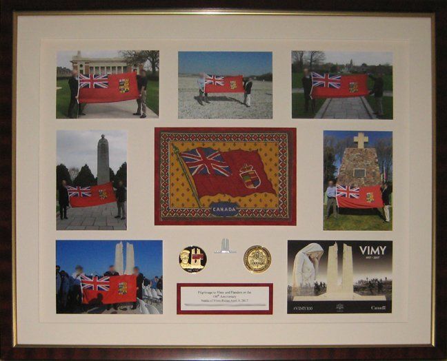 One of my long-time customers brings me quite interesting framing projects... this last one was a Christmas gift for his nephew, who made a pilgrimage along with my customer for the 100th anniversary of the Battle of Vimy Ridge in the spring of 2017.