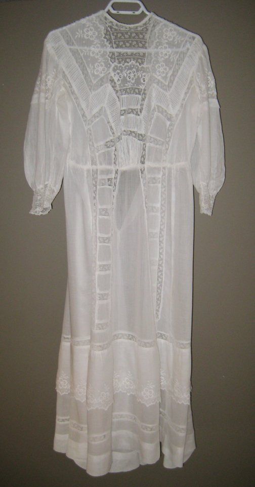 The cotton wedding dress had been stored in a box in my customer’s cedar chest and other than being quite wrinkled when taken out of the box, the dress was in very good shape. There were a few yellow stains, but they were hidden when folding the dress for placement in the shadow box. With my twin sister’s help, I pressed the dress and was able to remove much of the wrinkling (this took almost 4 hours!). The dress had a lot of lace and fine pleating details – simply gorgeous!