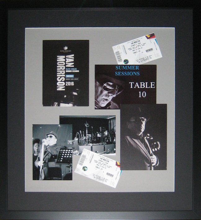 Have you knocked off an experience from your bucket list? My customer and her husband did... They had always wanted to see Van Morrison in concert in Ireland and fulfilled this bucket list experience! They had the opportunity to attend an intimate Van Morrison concert/dinner in the summer of 2016 at the Slieve Donard Resort and Spa in Newcastle, County Down, Northern Ireland. What better way to remember this amazing evening than to frame the memorabilia that the couple brought back...the program, tickets, table number sign, and photos.