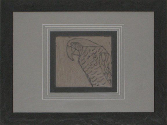 As an art project in junior high, my son, Chris, carved a parrot to be used for ink-block printing. Although he doesn't think of himself as being really artistic, he did a fabulous job and I thought it would make a great display sample in my framing studio.